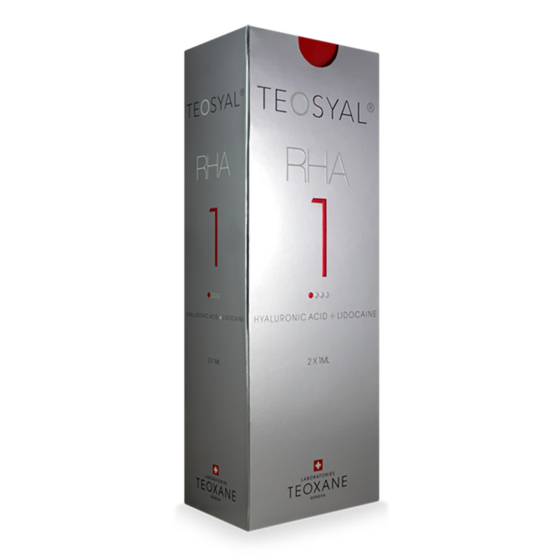 Teosyal RHA1 smooths fine lines and superficial wrinkles to give patients a more youthful, radiant appearance. Using a mix of cross-linked and non-modified hyaluronic acid of non-animal origin (known as Resilient Hyaluronic Acid or RHA), this cosmetic filler helps slow the signs of aging while maintaining a natural look. This product also contains lidocaine, an anesthetic that makes injections more comfortable.